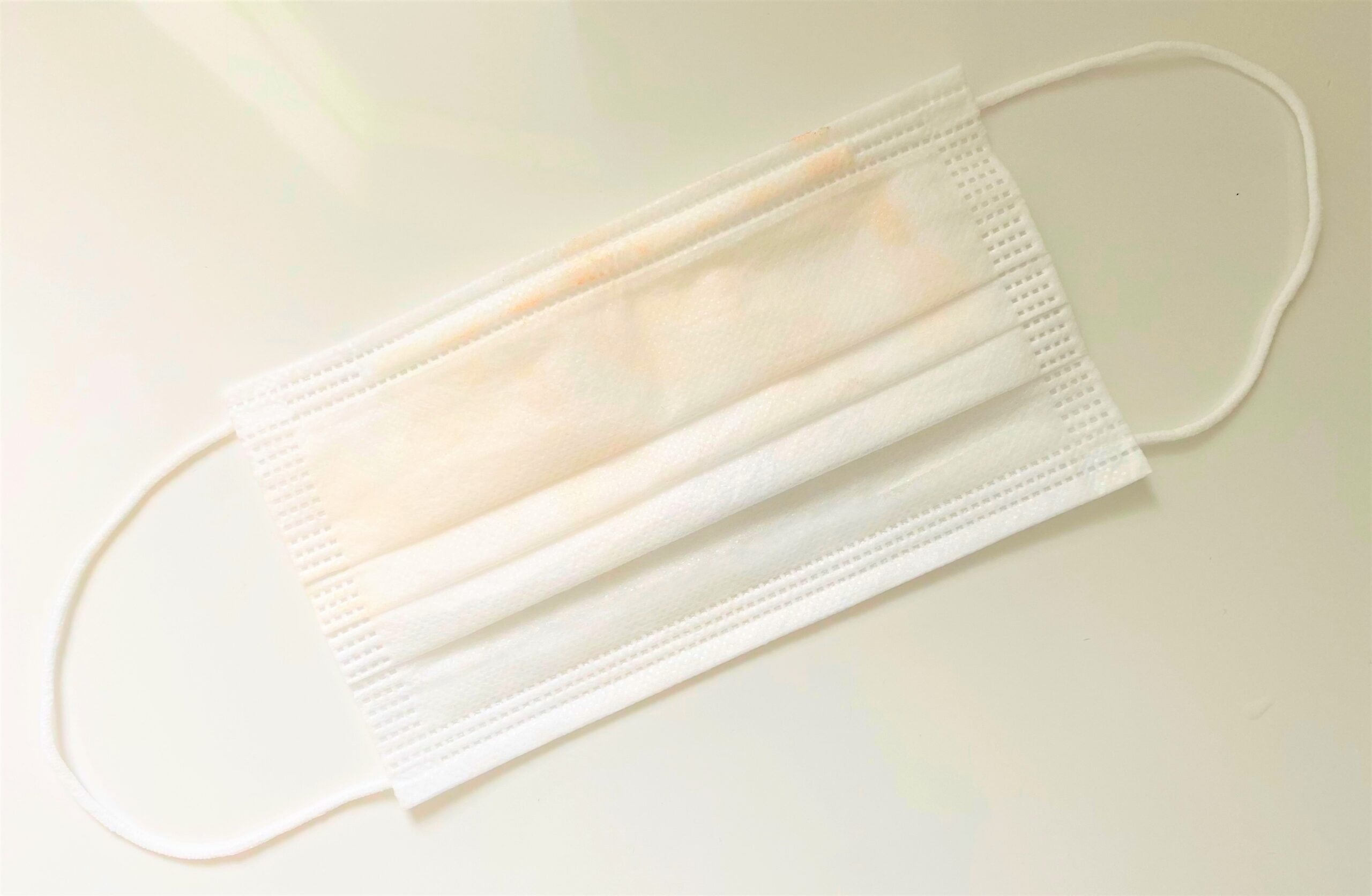 マスクの上半分には、まんべんなくファンデーションが移っていますね。