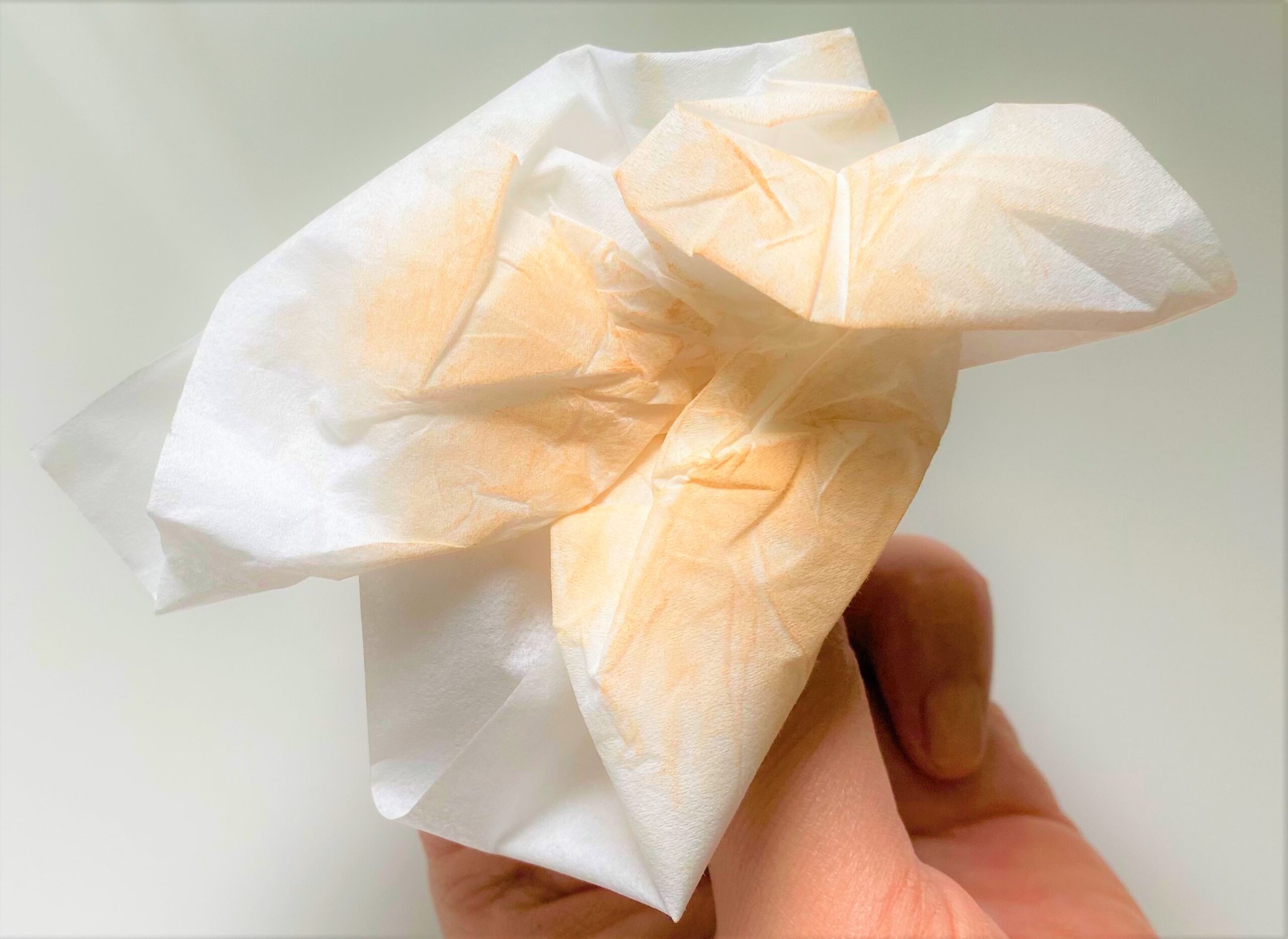 ファンデーションは、ティッシュペーパーにそこそこ付着 しますねぇ。