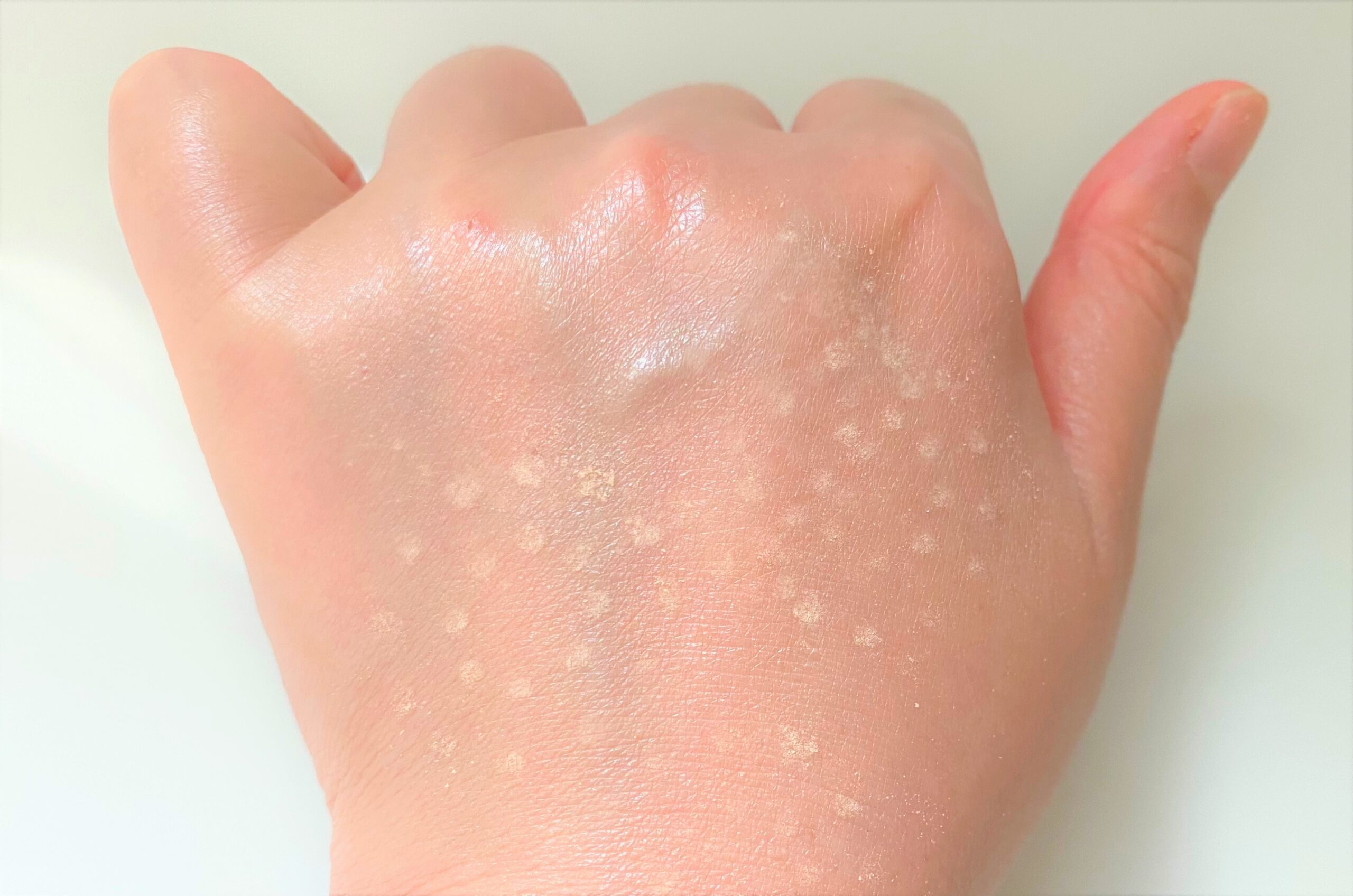 手の甲全体に伸ばしきった様子が、こちら。