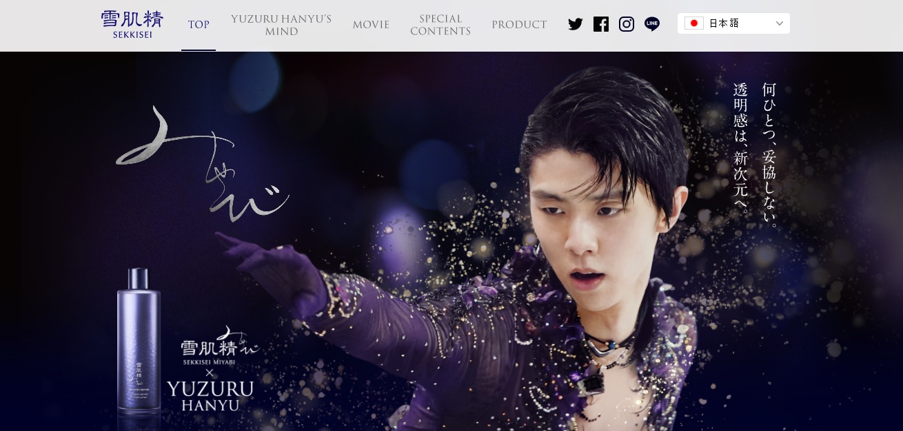 雪肌精の公式Instagramには、スケートの 羽生結弦選手 も掲載されており、公式HPには、特設ページも開設中。